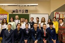 Девочки 8А во вторник поздравили мальчишек с праздником! Весёлым получилось поздравление, ребята услышали много приятных слов от девочек, поучаствовали в конкурсах . 23.02.2022