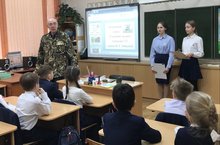 Накануне Дня Защитника Отечества в 1а классе проведен классный час. Гостями классного часа были учитель обществознания, Заслуженный учитель РТ, руководитель поискового отряда «Снежный десант», Садыков Жаудат Назипович со своими учениками. 23.02.2022