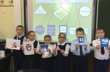 Ребята изучали дорожные знаки. В группах ученики выполнили аппликации различных дорожных знаков и рассказали о них всем детям.