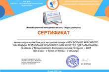 5 Всероссийского фестиваля письма «От знака – к букве, от буквы – к смыслу!». А результат? Это сертификаты призёров и участников Конкурса на лучший почерк.
