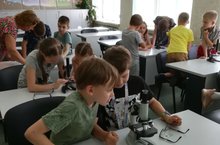 16 июня дети из пришкольного лагеря «Зайка моя» имели возможность «понаблюдать» за звёздами. Полнокупольное шоу мобильного планетария «Путешественник». Познавательное и очень увлекательное мероприятие. В отрядах ребята активно участвовали в викторинах, играли в грамматические игры. «Словоед»- так называется одна из самых интересных. В кабинете биологии была возможность познакомиться с микроскопом. Интересная лагерная смена, дети отлично проводят время