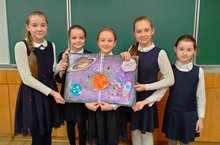 60-летию первого полета человека в космос ученики 3А класса решили посвятить очередную групповую проектную работу. Ребята работали по 2 темам – «Полеты человека в космическое пространство» и «Планеты Солнечной системы», тем самым расширяя знания по окружающему миру, умения работать в группе, с разными материалами.