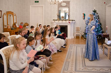 Ребята совершили театрализованное путешествие по празднично украшенному дому семьи Боратынских, узнали о таинстве Рождества, научились правильно загадывать новогодние желания, петь колядки. А в Бальном зале дома-музея, где раньше в дореволюционной России Боратынские встречали гостей, проводили балы и приемы и устраивали домашние спектакли, ребят встретила волшебная новогодняя елка, возле которой в лучших традициях семьи Боратынских ребята показали свои новогодние номера и водили настоящий хоровод.