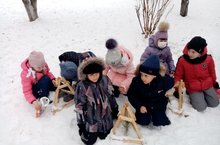 Ученики 2 Б класса проверили как растут маленькие сосенки, посаженные возле школы этой осенью, позаботились о них - укутали их снегом.