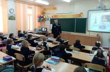 С первоклассниками вел классный час заместитель начальника отделаЭкспертно-криминалистического центра МВД по Республике Татарстан,подполковник Алакшин Илья Александрович.