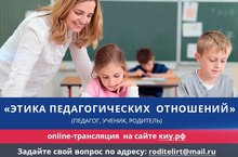 14 декабря с 16.00 до 17.30 пройдет Республиканское родительское интернет-собрание с участием Министра образования и науки РТ Бурганова Р.Т. на тему "Этика педагогических отношений (педагог,ученик, родитель). Задайте свой вопрос по адресу :http://roditelirt@mail.ru Онлайн -трансляция на сайте http://киу.рф
