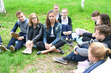 Сегодня в школьном саду физматовцы рассказывали о своих любимых историях и авторах.
