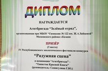 Ребята - победители Районного этапа и призеры 4 Республиканского экологического Фестиваля—конкурса «Радужная сцена» в номинации «Агитбригада»
