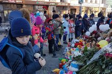 Ребята 3 А класса возложили цветы и мягкие игрушки в память о погибших в Кемерово 02.04.2018