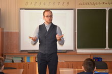 13 февраля в рамках мероприятий, посвященных юбилею гимназии, а также в преддверии дня всех влюбленных, гостем 1 б класса стал выпускник гимназии № 122, популярный ведущий LOVE радио и утреннего шоу на телеканале ТНВ - Влад Портнов
