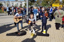 Кроме изготовления поделок ребята еще и играли на различных инструментах - скрипке, домре и гитаре
