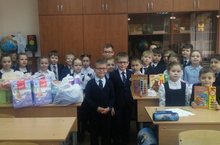 Первоклассники вместе с родителями и учителем собрали для пациентов Казанского хосписа влажные салфетки, одноразовые пеленки, а также специально для своих сверстников - звуковые книги и наборы для творчества