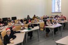 Первоклассников из казанской гимназии N 122 пригласили на съёмки новогодней программы, которые прошли в новом ньс-руме Высшей школы журналистики и медиакоммуникаций КФУ.