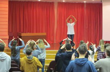 Перед увлекательными занятиями по иностранным языкам, истории и психологии на общем сборе ребята вспомнили информацию о волонтерской деятельности, поучаствовали в игре "Изобрази идеального волонтера"