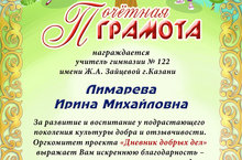 Классный руководитель 4 В класса Лимарёва Ирина Михайловна награждена грамотой от проекта «Дневник добрых дел» 15.12.2016