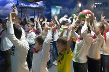 Привлекли детей из лагеря «Зарницы»: устроили спортивные эстафеты, провели флешмоб «Пионерская зорька»