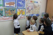 14 апреля ученики 1 Б класса посмотрели выставку персональных рисунков «Животный мир» ученицы 3 А класса Савосиной Дарьи.