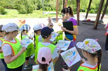 Разделившись на 2 команды - "красных" и "зеленых" - ребята учились по картам ориентироваться на местности, находить нужные объекты. Победили "зеленые". Затем все приняли участие в подвижных играх и спортивной эстафете.