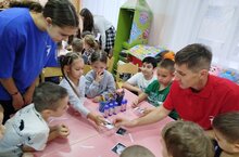 Сегодня состоялось мероприятие6, посвященное вступлению воспитанников подготовительной к школе группы в Движение Первых. участники Движение Первых из шеф0школы № 130 вручили нашим детям значки, подарили рабочие тетради.