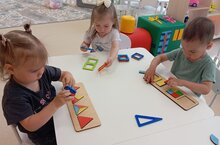 Сегодня воспитанники младшей группы нашего детского сада окунулись в игровое познание геометрических фигур, их свойств и отношений. Так они сделали первые шаги в мир математики, потому что именно игровые действия являются и элементарными математическими действиями. Такие игры расширяют кругозор детей, позволяют им более точно и разносторонне воспринимать и выделять форму, ее величину, а также создавать из геометрических фигур различные предметы.