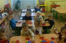 Весёлая математика в группе №14, ребята с легкостью могут посчитать грибочки и выполнить сложные узоры из геометрических фигур в сопровождении музыки