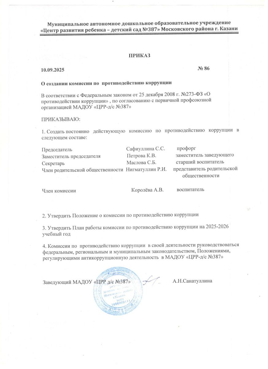 Приказ о создании комиссии по противодействию коррупции