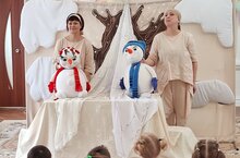 У нас в гостях артисты театра Пеликан с кукольным спектаклем "Солнышко и снежные человечки".