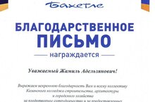 Благодарность ГК «Бахетле» 26.06.2025