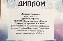 Лауреат I степени группа: "Конфетти" номинация: "Детский танец", 5-7 лет.
