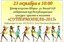 Отборочный тур Республиканского конкурса красоты и талантов "Супермодель-2015" состояится 23 октября в 10.00 по адресу ул.Восход 16а, центр искусств "Шарм".