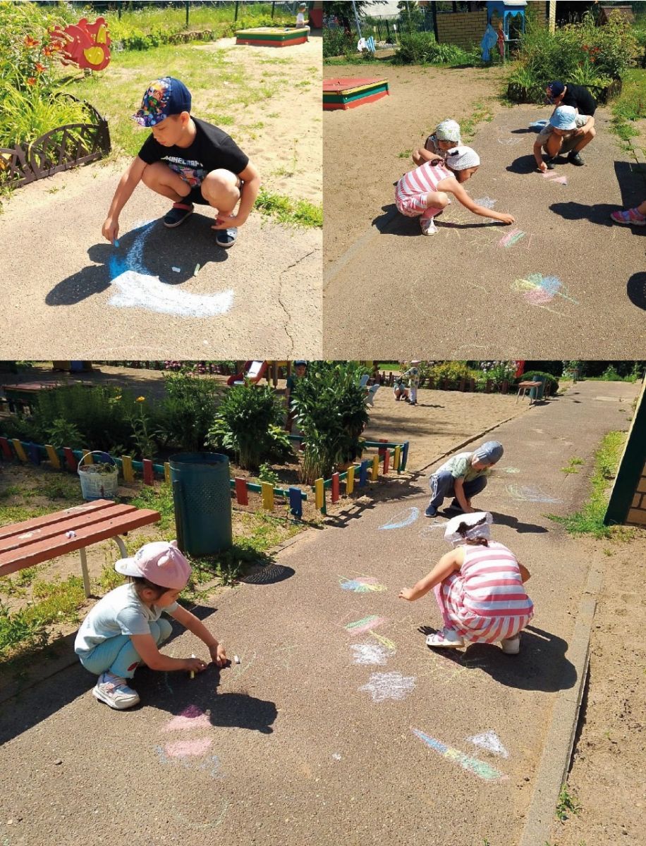 Рисование на асфальте – это не только веселое занятие для ребят во время прогулки, но и творчество, и познание окружающего мира. В своем творчестве чаще всего мальчики и девочки изображали солнышко, радугу, цветы, детей и машины. Кто-то из ребят отправился в плаванье на корабле, кто-то в путешествие по лесным и цветочным полянам, а кто-то вспомнил героев мультфильмов. И не так важно, какой рисунок появится у дошкольников на асфальте, важен сам процесс рисования, ведь он доставляет ребятам огромное удовольствие.