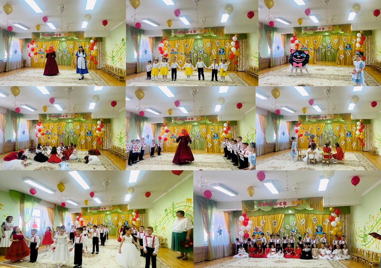 27 мая в нашем детском саду прошёл Выпускной "Алиса в стране чудес" в подготовительной группе № 5. Дети и взрослые очутились в волшебной сказке. Были на празднике песни, танцы, игры и подарки. Праздничные костюмы мальчиков, платья с пышными юбками у девочек украсили праздник. Красивые песни про детский сад, про воспитателей, про родителей взволновали всех присутствующих. Зажигательные танцы с первых аккордов сопровождались аплодисментами зрителей. Сюрпризом было поздравление от детей младшей группы и от сказочных героев.