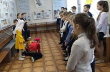 Экскурсия в школьном музее, учащиеся школы знакомятся с творчеством А.Алиша