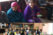 Учащиеся 2б класса подготовили своими руками открытки для бабушек и вручили им 1 октября в дом пристарелых.