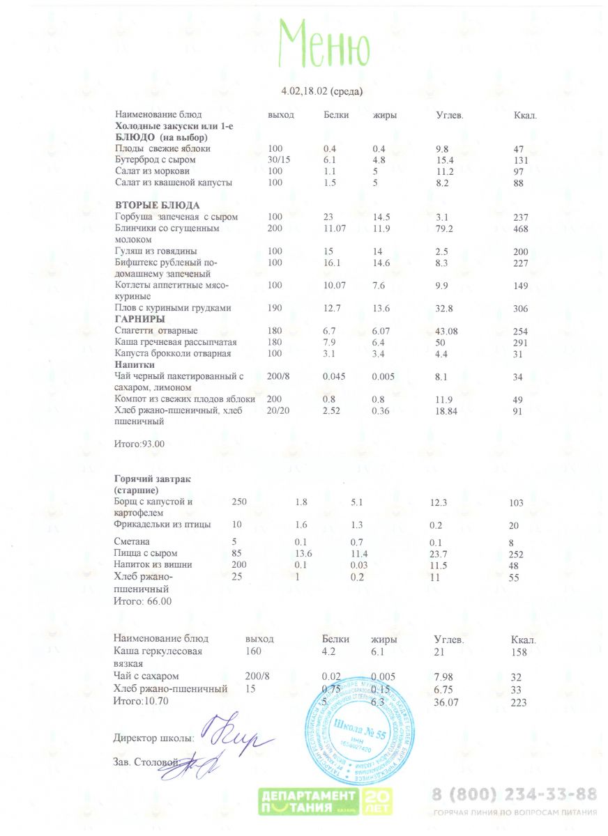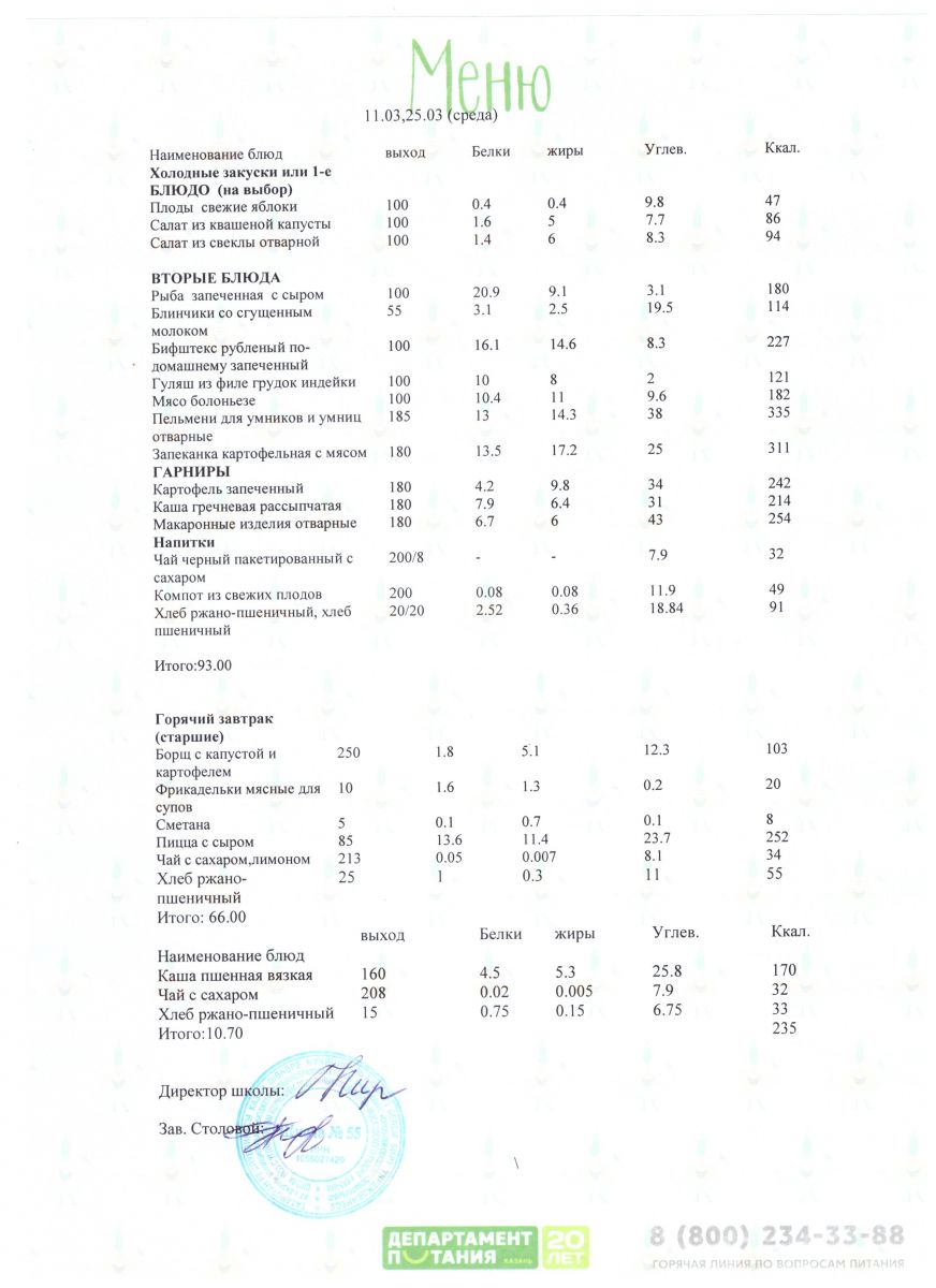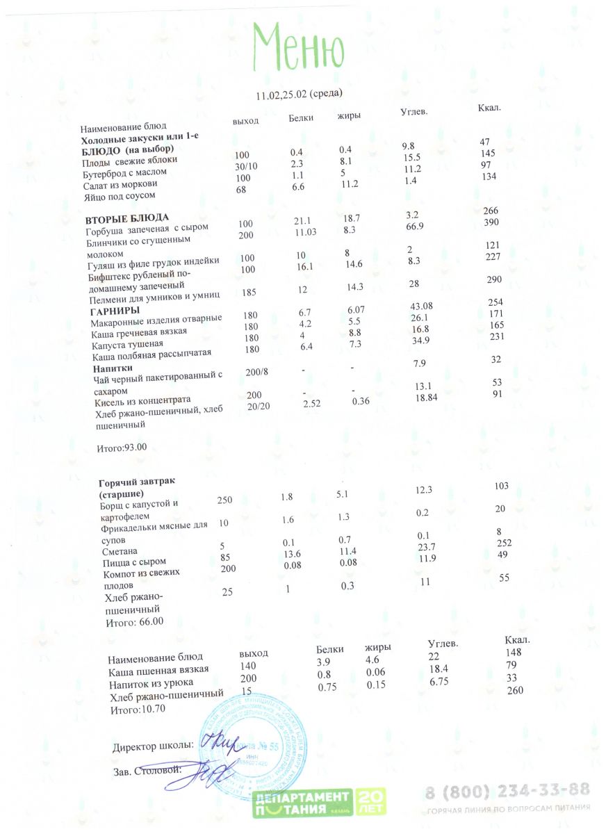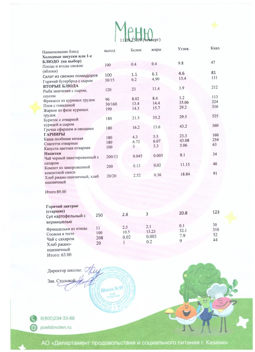 Меню 5 - 11 классы