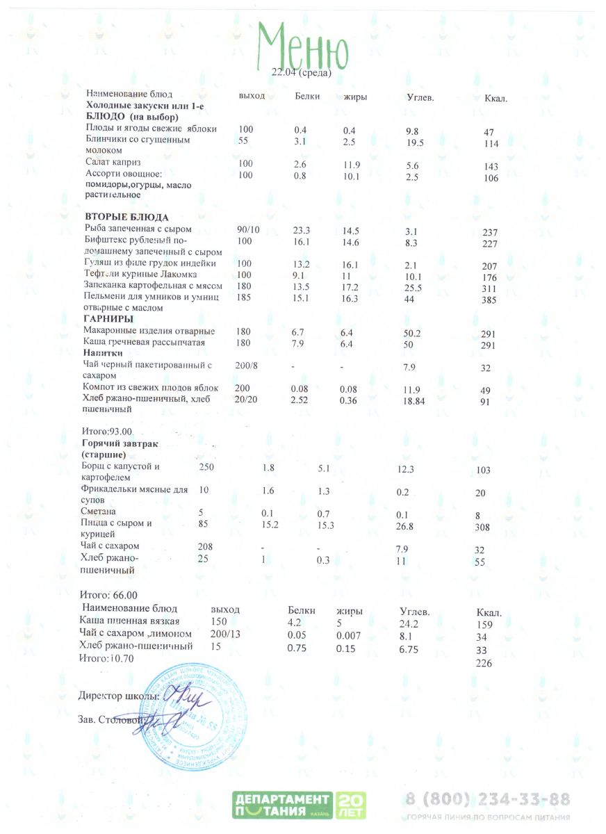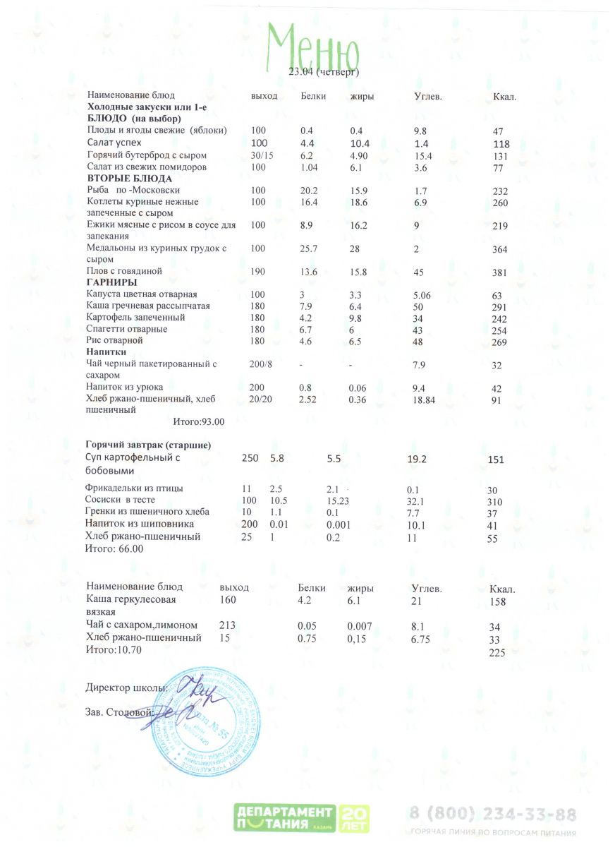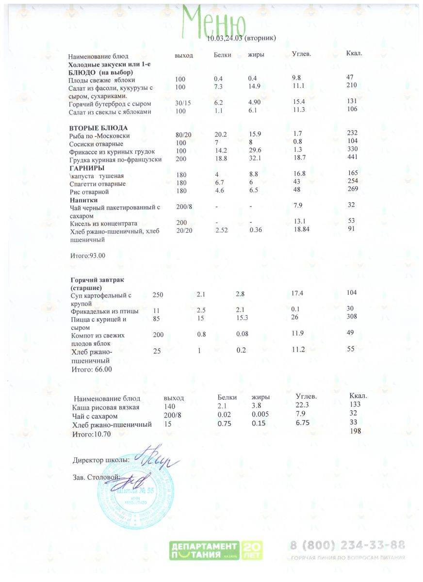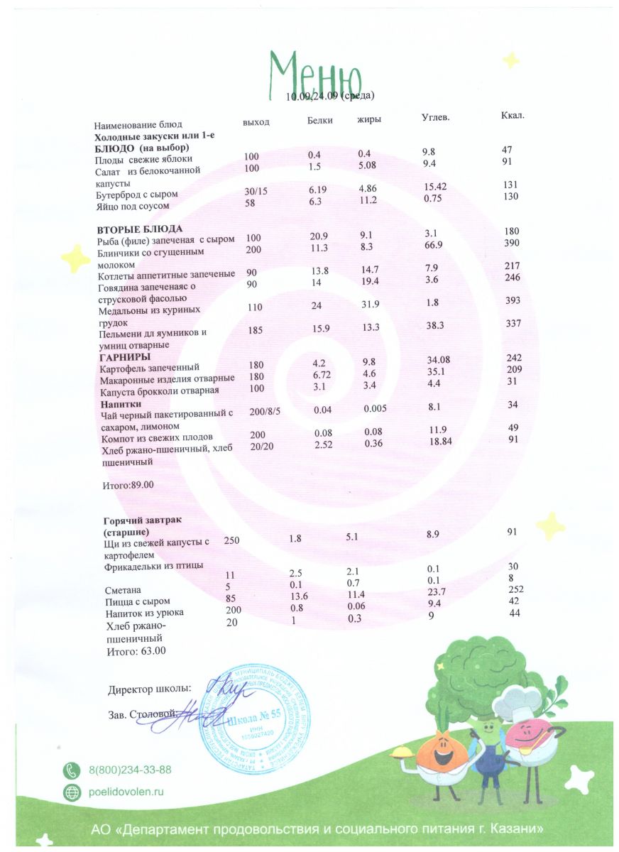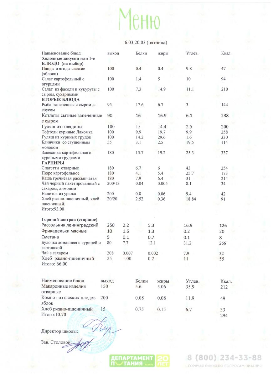 Меню 5 - 11 классы