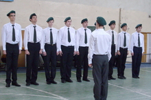 В школе идет подготовка к районному конкурсу «Чеканя шаг военный» (парад мальчишей), который состоится 6 мая в 10:00 ЦКС «Московский».