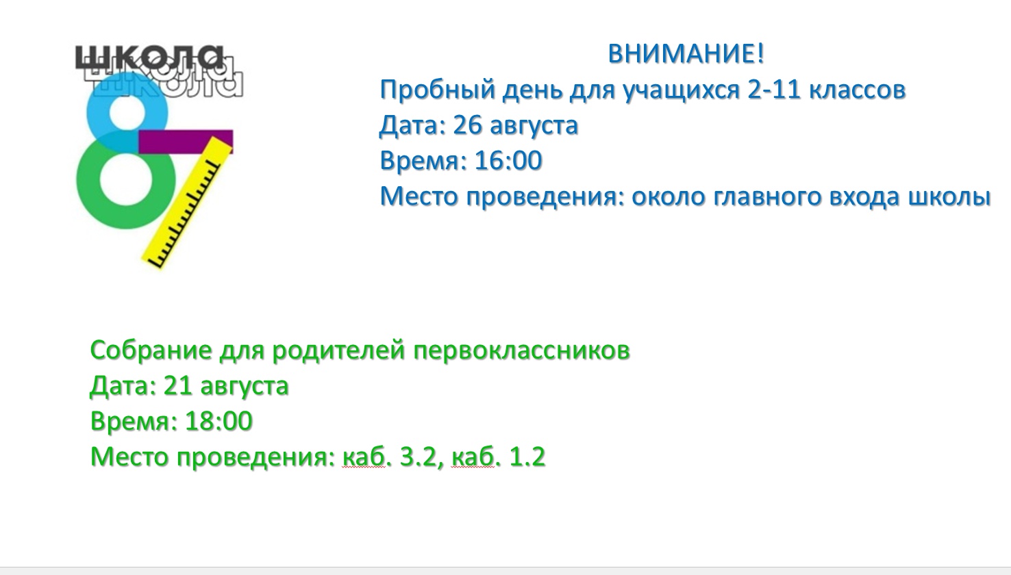 Родительское собрание состоится 25 сентября 2025 года в 18:30 кабинет 3.1 -