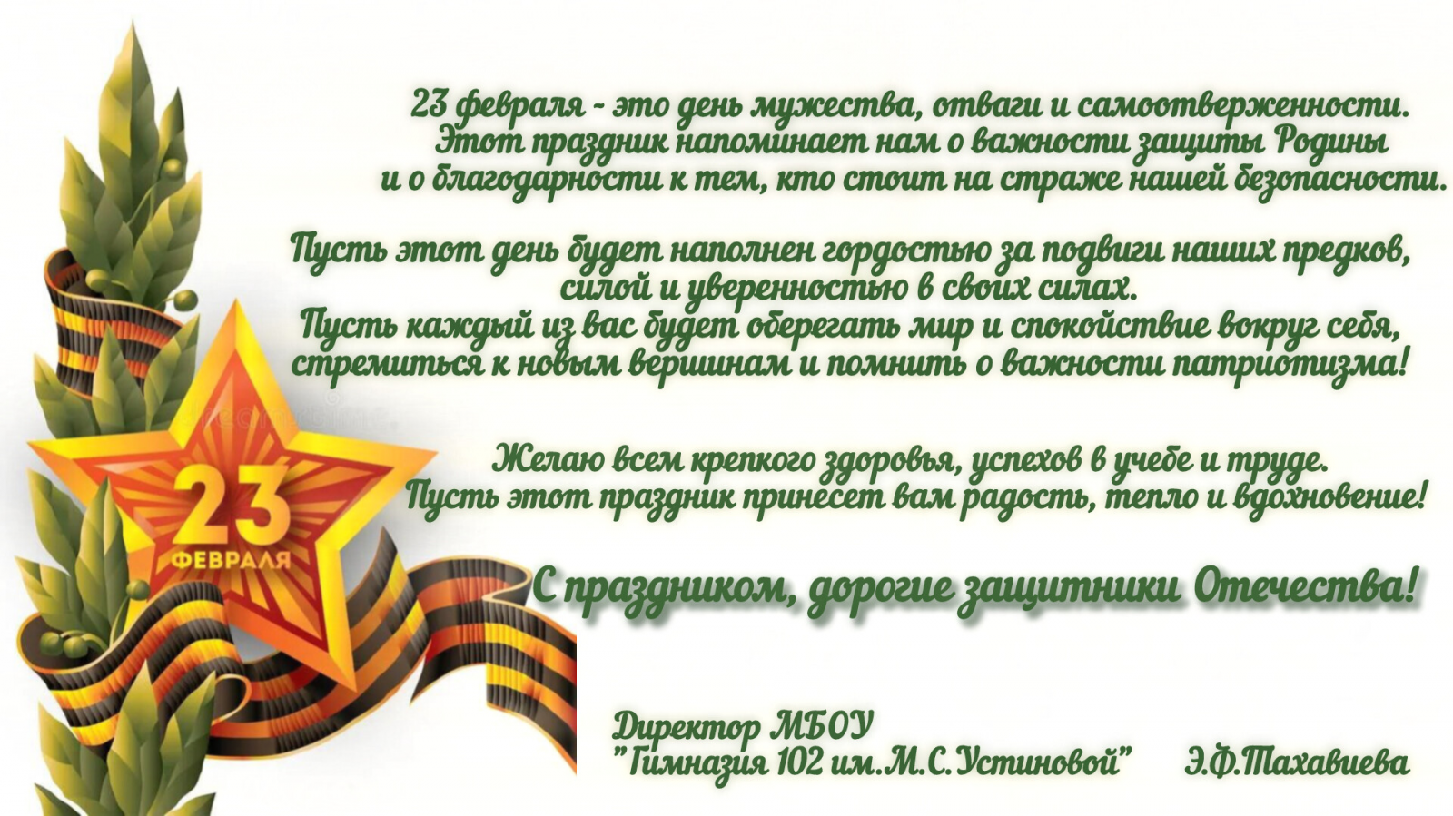 Атналык барышында Герой шагыйрь М Җәлилнең тормыш юлы һәм иҗатына багышланган музыкаль композиция куелды,шигырь сөйләүчеләр,рәсем ясаучылар бәйгеләре уздырылды. Интеллектуаль уеннар, ачык дәресләр күрсәтелде. Атна дәвамында экраннарда татар халкының милли йолаларын,тормышын чагылдырган презентацияләр куелды. - С Днем защитника Отечества! 23.02.2026