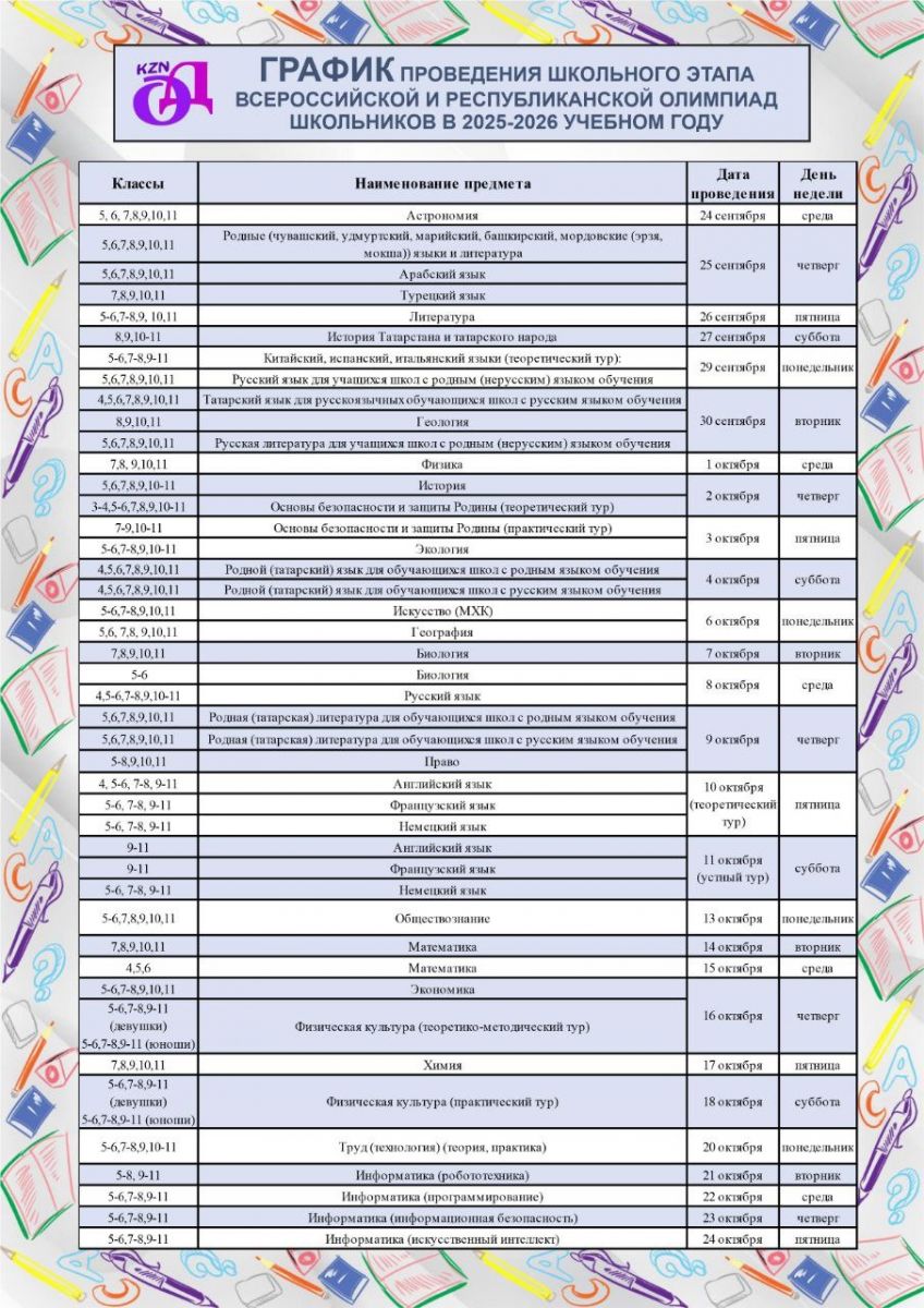 Приказ Министертсва образования и науки РТ "О проведении школьного этапа всероссийской и республиканской олимпиад школьников в Республике Татарстан в 2025/2026 учебном году"