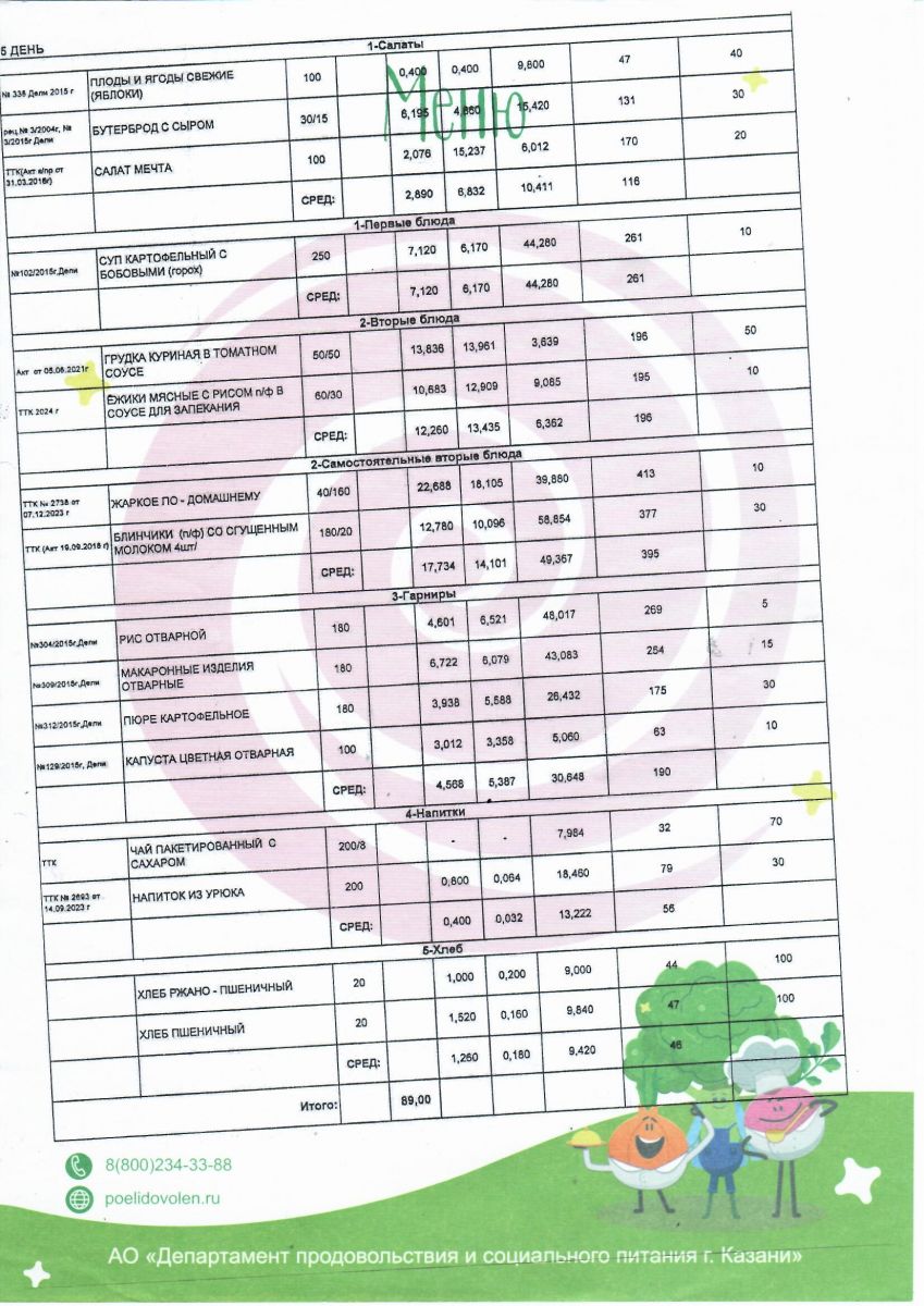Ежедневное меню Свободный. выбор 1 день 2 день 3 день 4 день 5 день 6 день