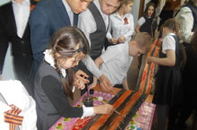 В преддверии для Победы в школе стартовала акция "Георгиевская ленточка". Каждый кто принял участие в создании самой большой георгиевской ленты получал ее на грудь. Активисты ДОО" Сталкер" в знак уважения к победам наших дедов и прадедов договорились носить георгиевские ленты на груди весь май.