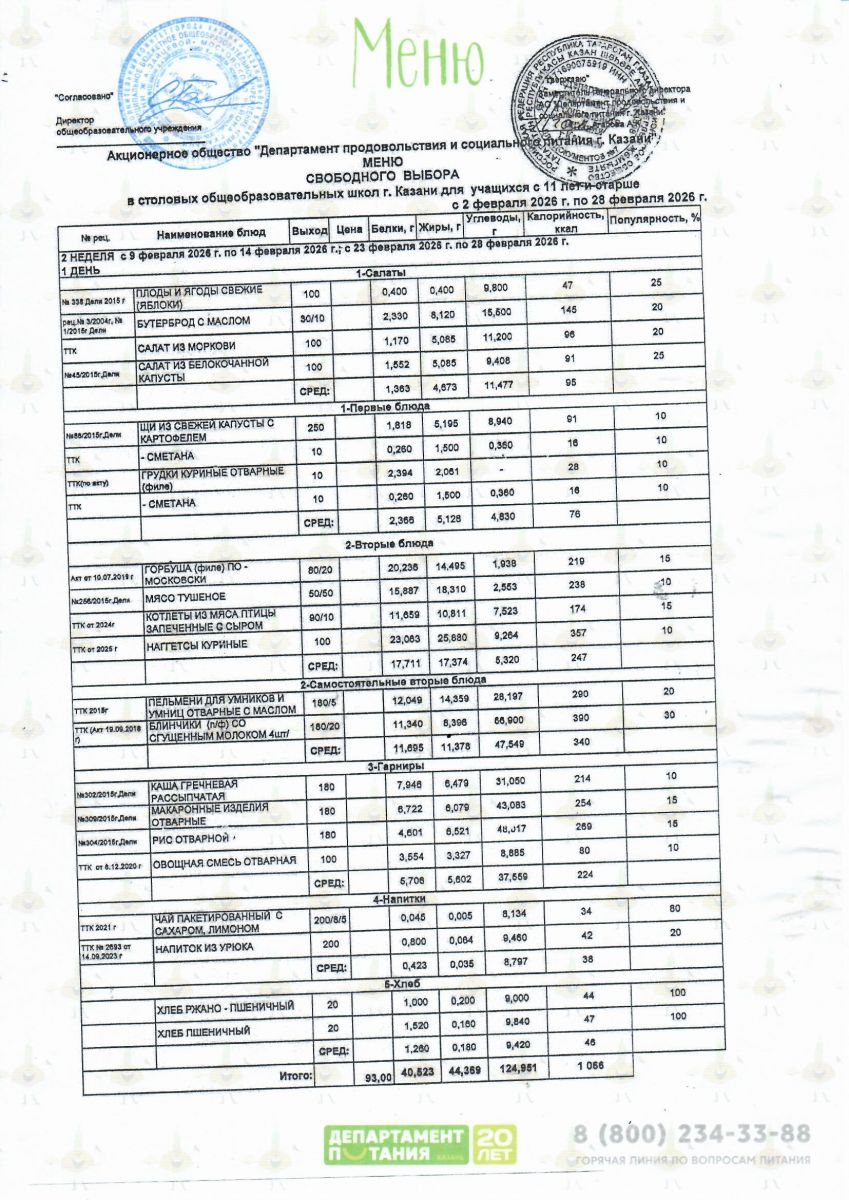Ежедневное меню Свободный. выбор с 09.02.2026-14.02.2026 1 день 2 день 3 день 4 день 5 день 6 день