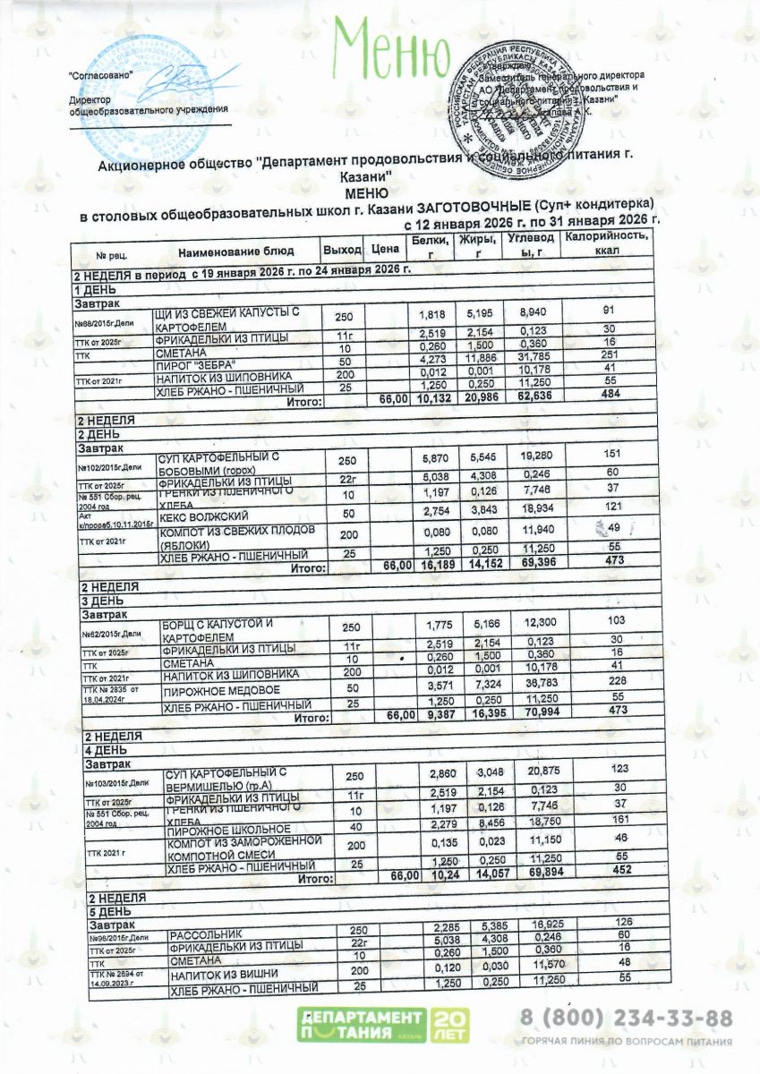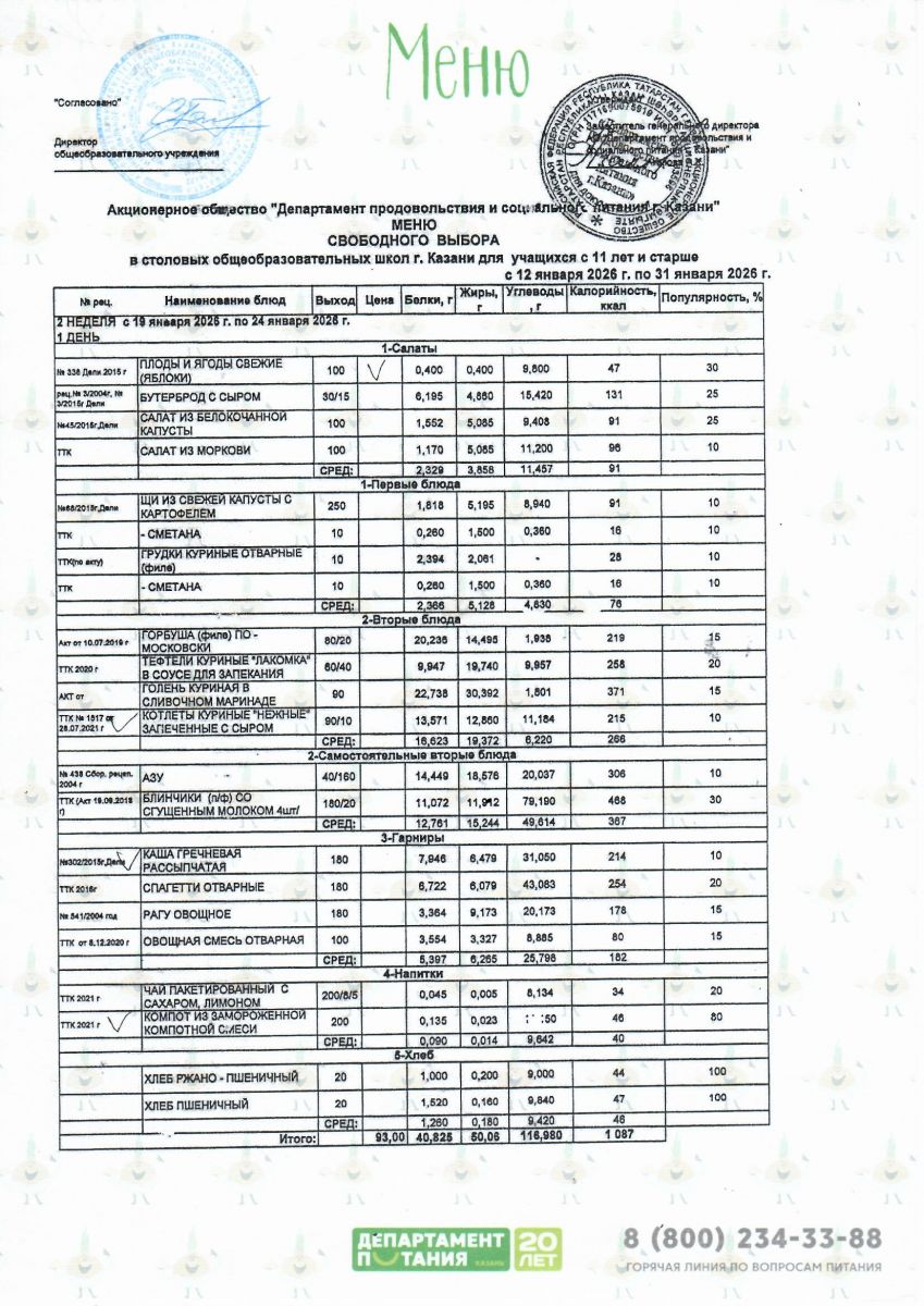 Ежедневное меню Свободный. выбор с 19.01.2026-24.01.2026 1 день 2 день 3 день 4 день 5 день 6 день
