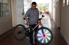 Педагог нашего центра, Трофимов Александр, модернизировал велосипед. Теперь он стал не только транспортом здорового образа жизни, но и более безопасным транспортом. На колесо велосипеда была сделана светодиодная подсветка, окрашивающая колесо при движении в цвета флага России и флага Татарстана. Это позволяет увидеть велосипедиста на более большом расстоянии.