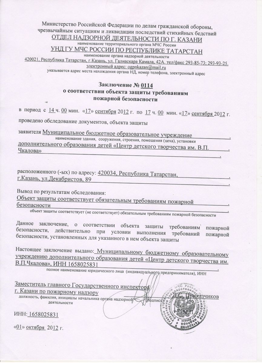 Заключение "Госпожнадзора"