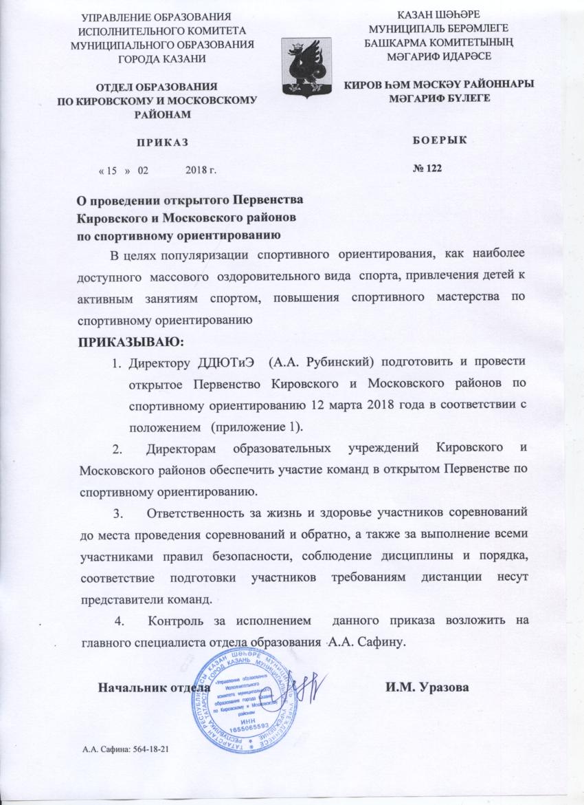 Приказ о проведении открытого Первенства Кировского и Московского районов по спортивному ориентированию