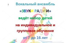 Вокальный ансамбль "Звуки радуги" объявляет набор детей на индивидуальное и групповое обучение от 7 до 16 лет. Ты хочешь научиться петь, не бояться сцены? Завести много друзей? Тогда тебе нужно именно к нам!