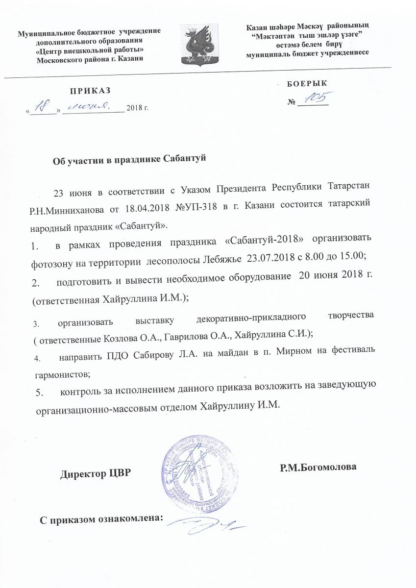 11. Организация и проведение татарского народного праздника «Сабантуй» Приказ
