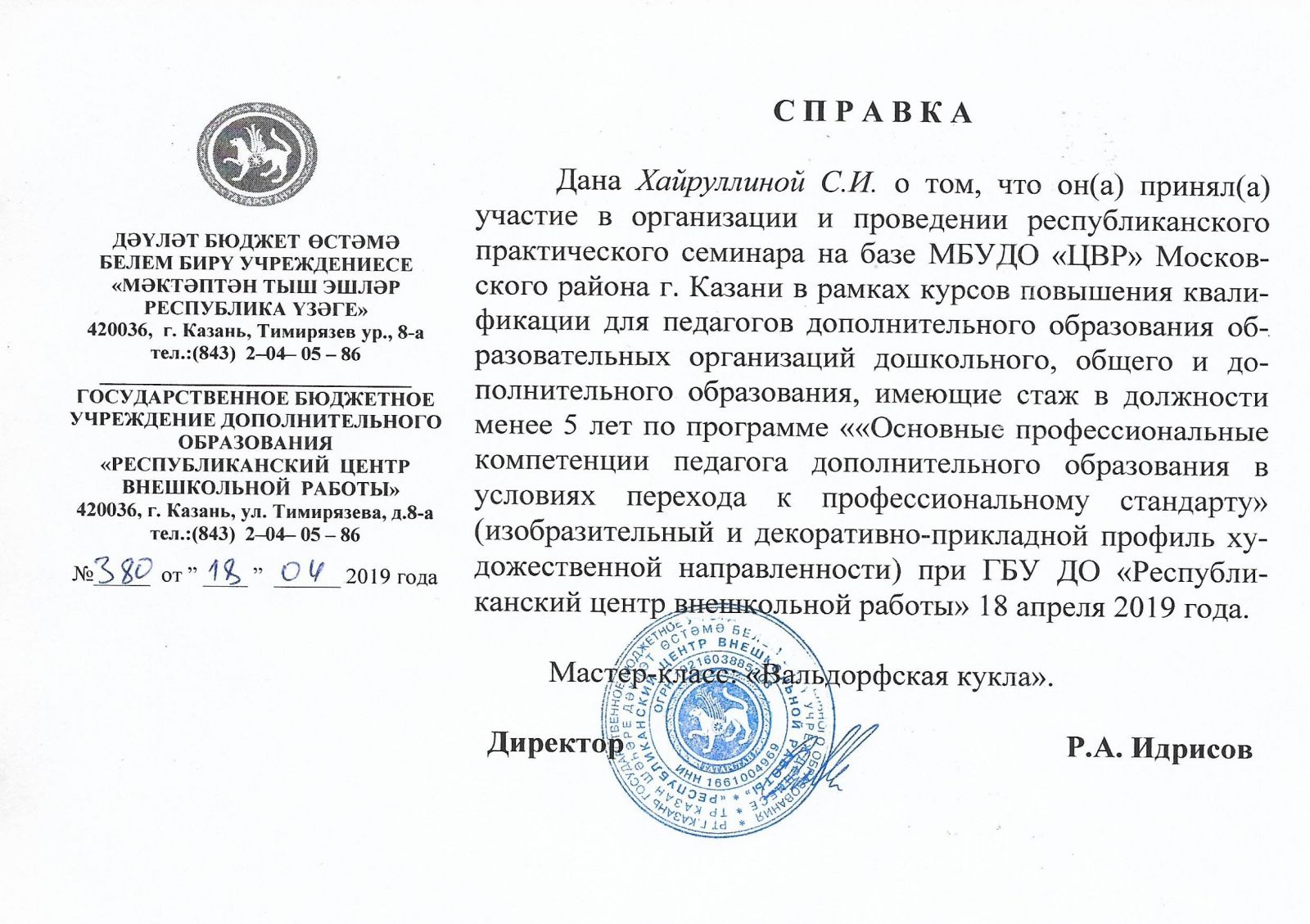4. Организация и проведение республиканского практического семинара в рамках курсов повышения квалификации 18.04.2019 Приказ . Справка Богомоловой Р.М., Тюриной Т.В., Трифоновой А.В., Андреяновой Т.А., Алексеевой С.Е., Джанджигитовой А.А., Хайруллиной С.И., Ульяновой Г.С., Гавриловой Э.Т.